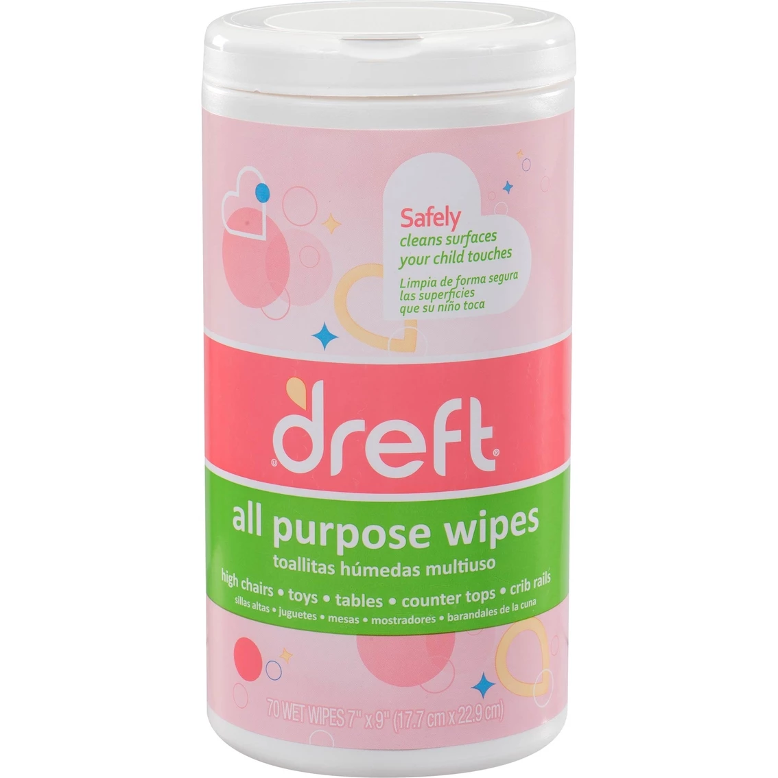 Dreft Gentle Clean Multi-Surface Wipes go wherever little ones may wander. They’re pre-moistened and formulated to swiftly clean any surface babies get their hands on. Toys, glass, counters and many more. Model: 871.