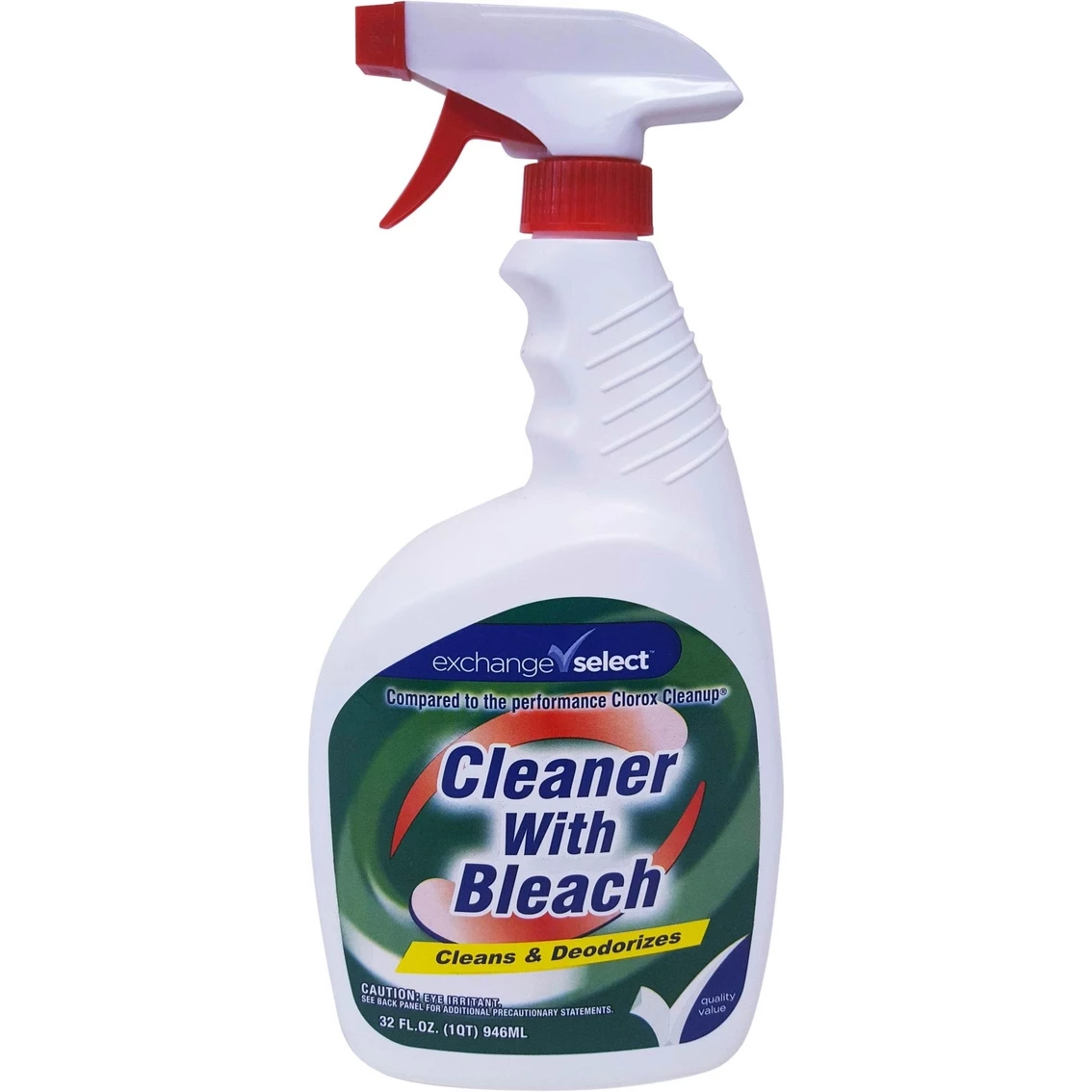 Use Exchange Select Cleaner with Bleach to clean and deodorize all washable bathroom and kitchen surfaces and fixtures that would not be damage by bleach: including tile, grout, tub, sinks, toilet bowls, shower walls and doors. Compared to the performance of Clorox Cleanup. Proudly made in the USA. Model: 29083.