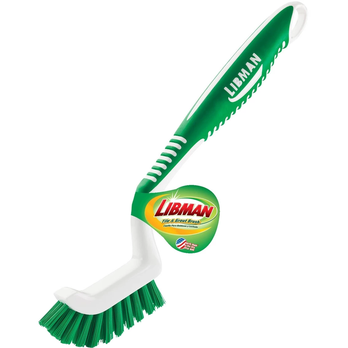 The Libman Tile & Grout Brush features a narrow head designed specifically to get into grout and other tight spaces. Ergonomic rubber grip won’t slip when wet. Hanger hole provides convenient storage. Model: 18.