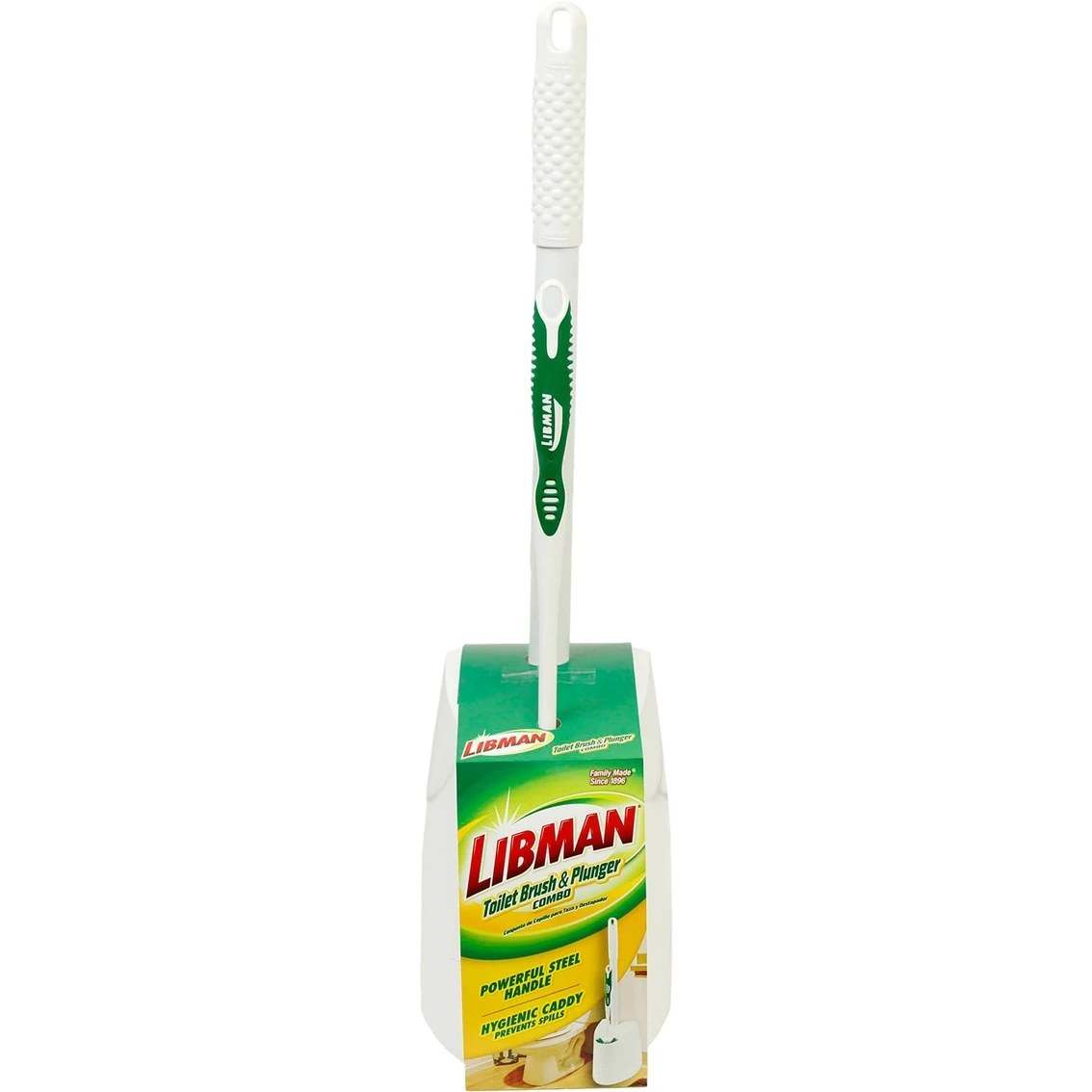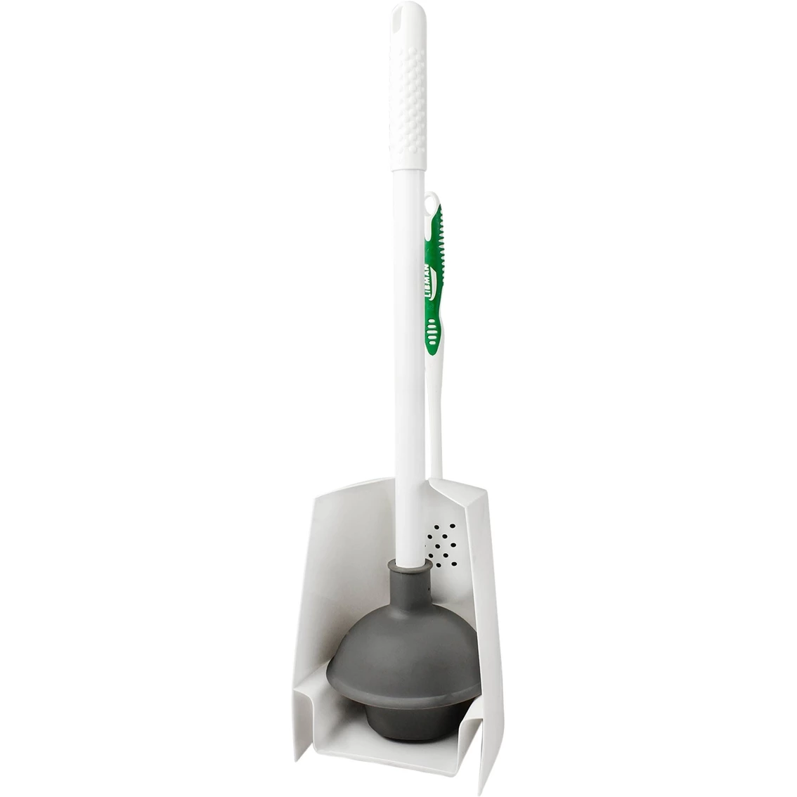 The Libman Toilet Brush and Plunger Combo is a premium plunger and designer brush with a storage caddy designed for aesthetics and convenience. Its space saving design looks great in any bathroom. Model: 1024.