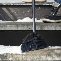 The O-Cedar Power Corner All Terrain Broom is great for cleaning garages, sidewalks, decks and other outdoor surfaces with less effort. This easy to manage, yet powerful broom features short durable bristles strong enough to sweep away heavy and wet debris. Angled to pull dirt from corners. Features comfortable foam grip. Memory bristles resist bending and hold their shape. Bristles made from 80% recycled plastic. The broom has a 12 in. sweeping width and 54 in. total height. Model: 168217.