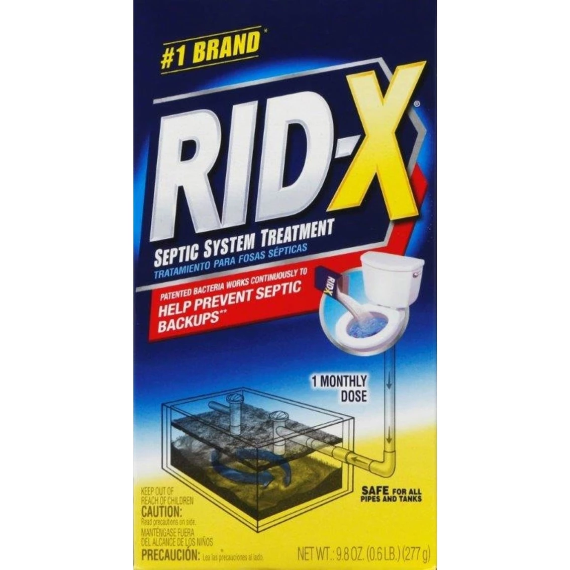 Rid-X Septic System Treatment is scientifically proven to break down waste to help prevent septic back-up problems and help maintain a free-flowing septic system. Rid-X Septic System Treatment’s patented bacteria works continuously to help prevent septic backups (along with occasional pumping). Rid-X is easy to use and safe for all pipes and tanks. Contains 1 monthly dose.