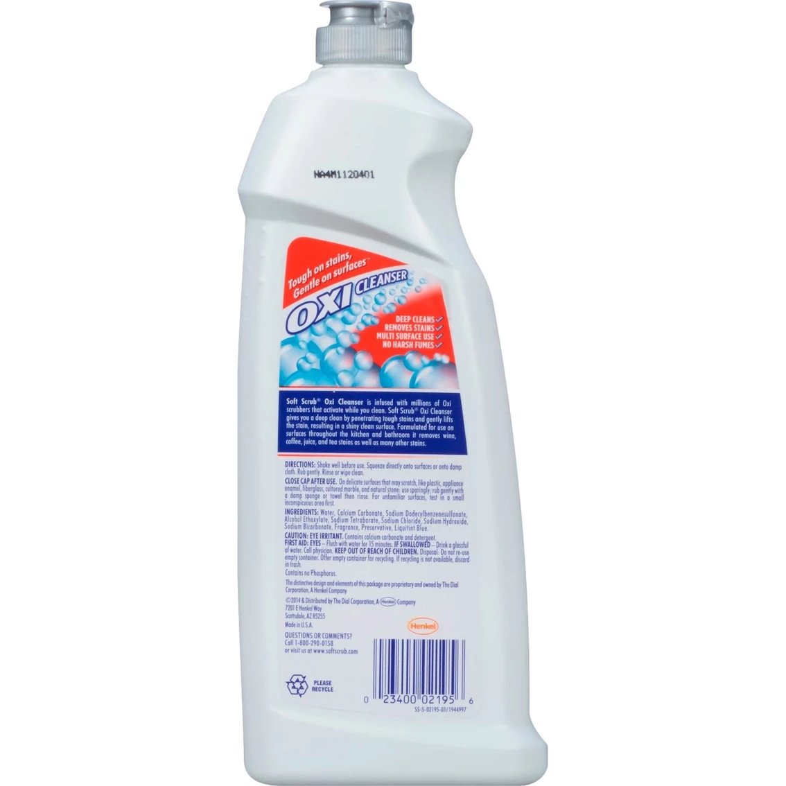 Soft Scrub Oxi Cleanser is infused with millions of oxi scrubbers that activate while you clean. Formulated for use on surfaces throughout the kitchen and bathroom. Soft Scrub Oxi cleanser gives you a deep clean by penetrating the stain, resulting in a shiny clean surface. Formulated for use on surfaces throughout the kitchen and bathroom, soft scrub oxi cleanser removes wine coffee, juice, and tea stains as well as many other stains.